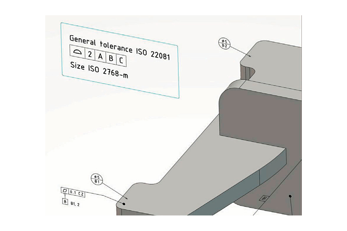 3D MBD -tilavuusmallille asetettu yleistoleranssi. Kuva: MetSta