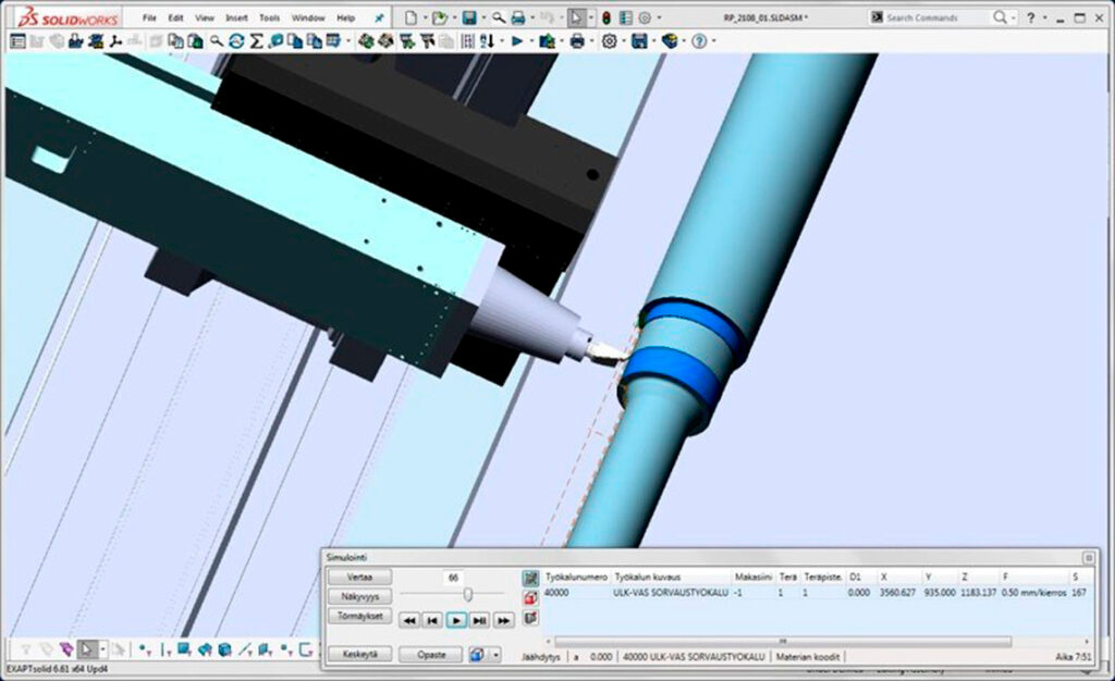 EXAPTcam-ohjelmisto sisältää täydellisen työstösimulaation koko työalueelle. Työstökoneen tarkka kinemaattinen malli, työkalujen ja työkappaleiden tarkat 3D-mallit, lastuamisen mukaan päivittyvät aihiomallit ja automaattinen törmäystarkastelu tuovat varmuutta työstöjen onnistumiseen.