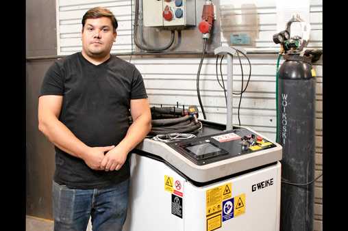Kuva: Kuvassa Mittametallin Jussi Tolonen ja G-Weike 3000W 4-in-1 -hitsauslaseri.