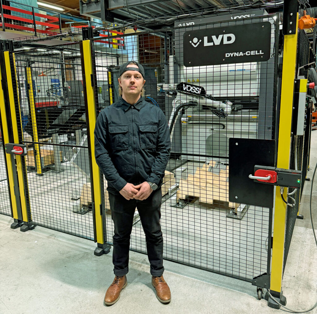 – Uuden tuotteen etäohjelmointi asetuksineen kestää tietokoneelle asennetulla LVD:n Cadman -ohjelmistolla ainoastaan 5–10 minuuttia. Näihin toimiin kului aiemmin aikaa päivän verran. Lisäksi automatisoidun LVD:n ansiosta pystyimme siirtymään särmäyksissä 24/7-tuotantoon, kertoo Niklas Iivonen.