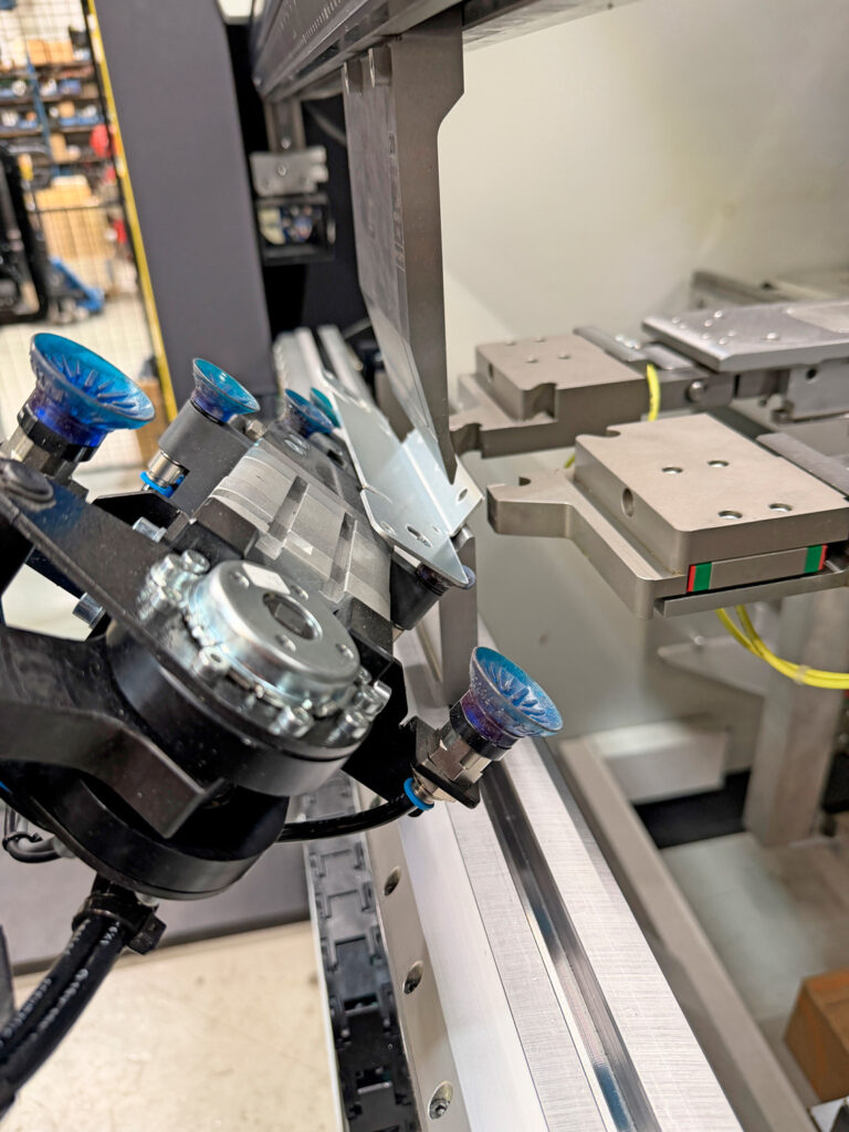– Toinen merkittävä asia on automatisoinnin hyödyt. Aiemmalla koneellamme teimme särmäyksiä kahdeksan tuntia vuorokaudessa. LVD:tä hyödynnämme 24/7, eli saimme tuotantotehon nostoa vähintään kolminkertaisesti. Esimerkiksi eräässä konttiosassa on yhdeksän taivutusta erittäin pienillä toleransseilla, ja tämän osan tekemiseen LVD toi huikeaa tehokkuutta, ynnää Iivonen.