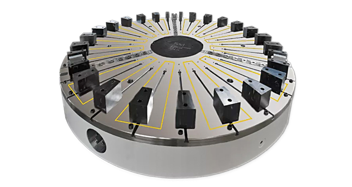 Yhdistämällä SAV:n magneettiteknologian tasaisen pitovoiman ja TDG:n mekaanisen leukatekniikan aksiaalisen jäykkyyden saavutetaan vakaa ja muodonmuutoksia minimoiva kiinnitys. Tämä lyhentää asetusaikoja ja parantaa pinnanlaatua erityisesti vaativissa kappaleissa, kuten tuuliturbiinien navoissa, suurissa laakereissa, raskaissa kotelorakenteissa ja muissa energia- ja prosessiteollisuuden komponenteissa.
