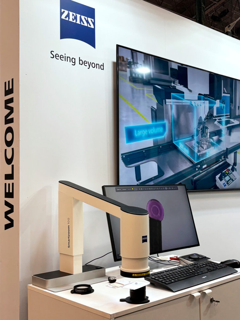 ZEISS esitteli osastolla suosituimpia tuotteitaan, kuten DURAMAX HTG -koordinaattimittauskoneen ja Smartzoom 100 -digitaalimikroskoopin, sekä PiWeb-raportointiohjelmiston.